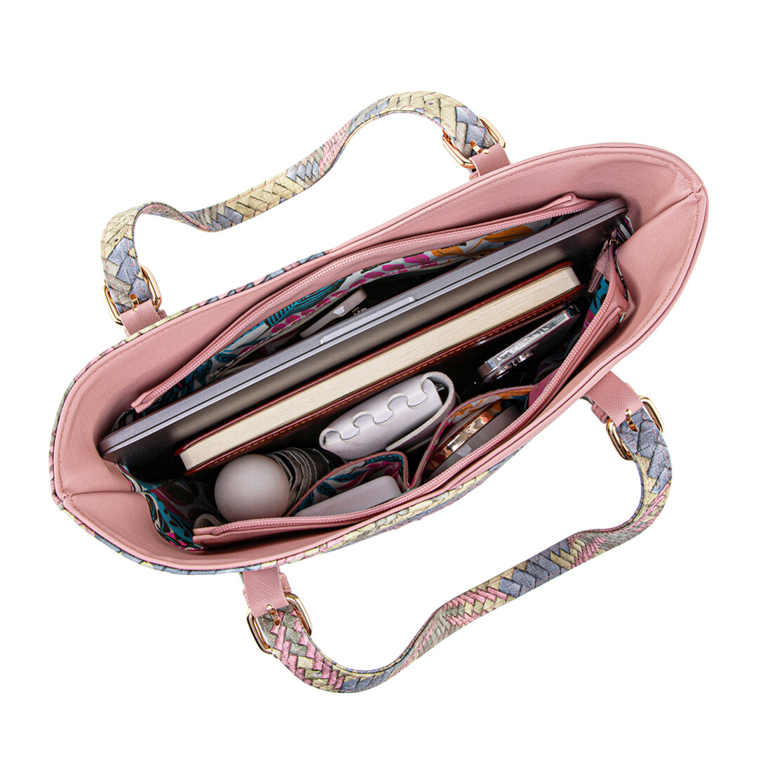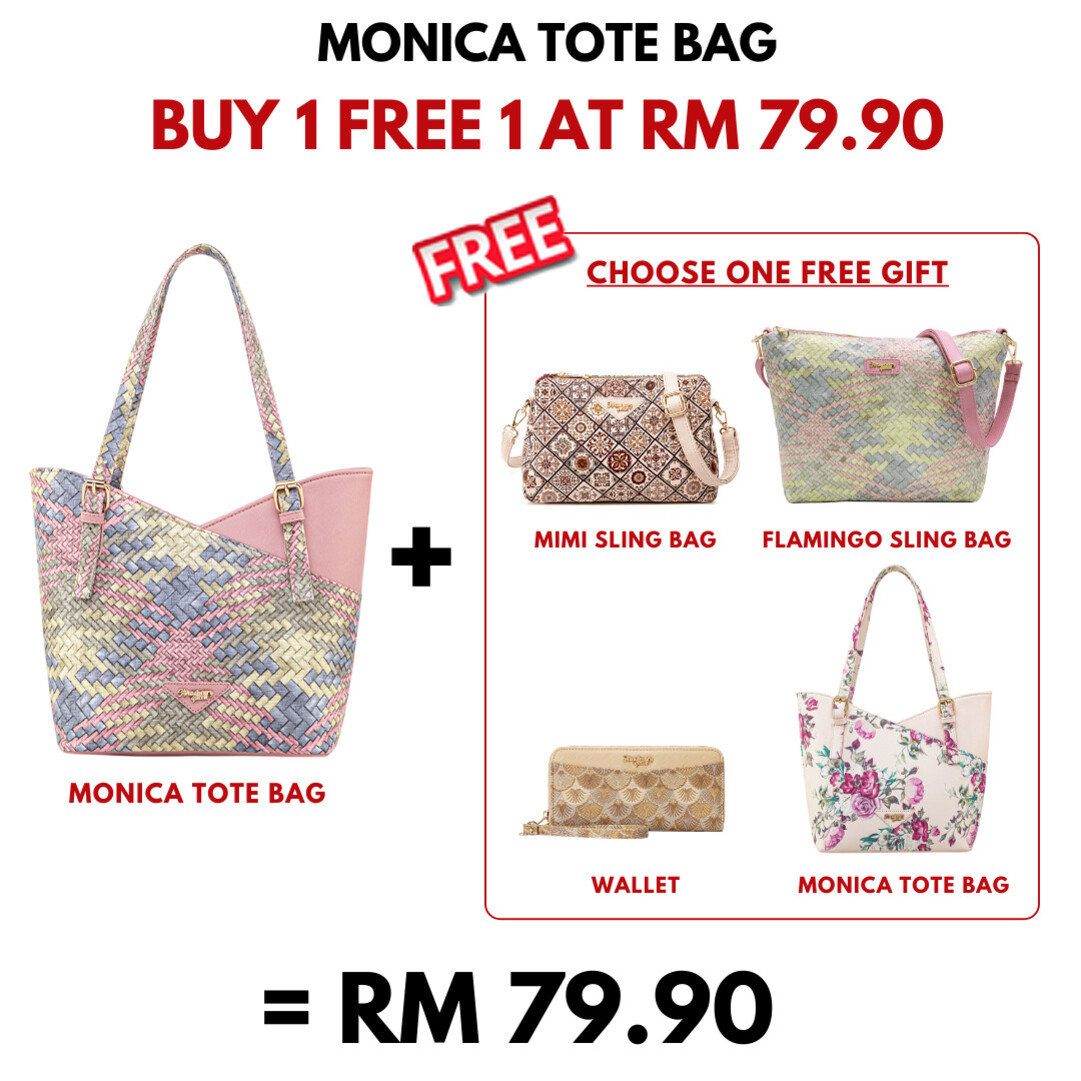 MONICA TOTE BAG - RATTAN AG, PASTEL PINK (BUY 1 FREE 1)